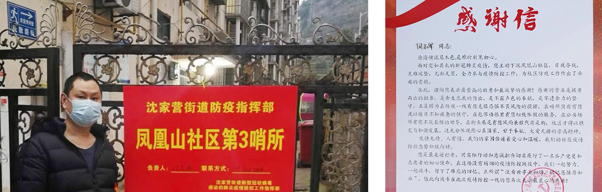 感谢信这样描述他的日常,“正是因为在防疫一线有您克服恐惧不畏风险的摸排,在哨所岗前有您夜以继日不知疲惫的值守,在包保楼栋里有您细致体微的服务,在公共场所有您不厌其烦的劝导,在街头巷尾有您风雨兼程代买采购,社区才得以稳定与和谐发展。这充分体现您心系国家、甘于奉献、大爱无疆的崇高精神。”公司号召全体员工以何志军为榜样,学习他积极主动,敢于担当,勇于奉献的精神,把这种精神落实到日常工作中,为企业和社会发展做出更多贡献。